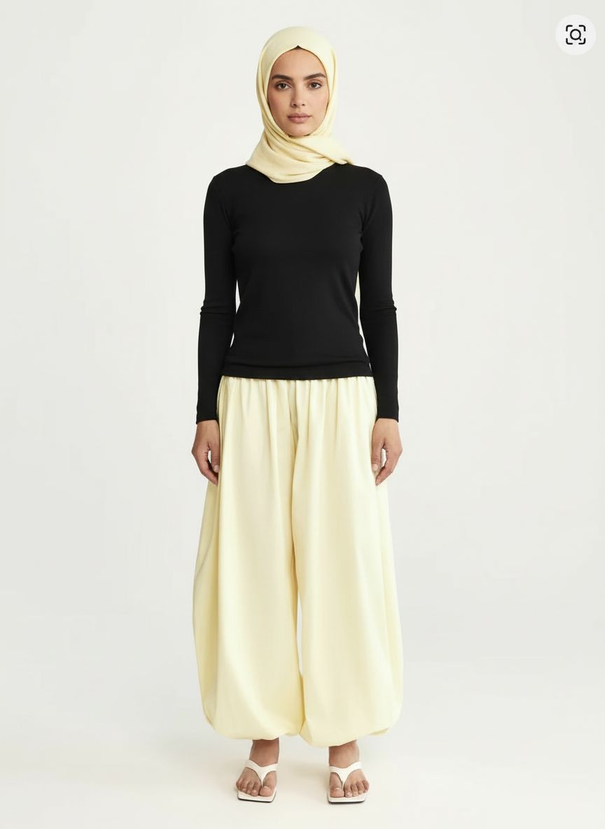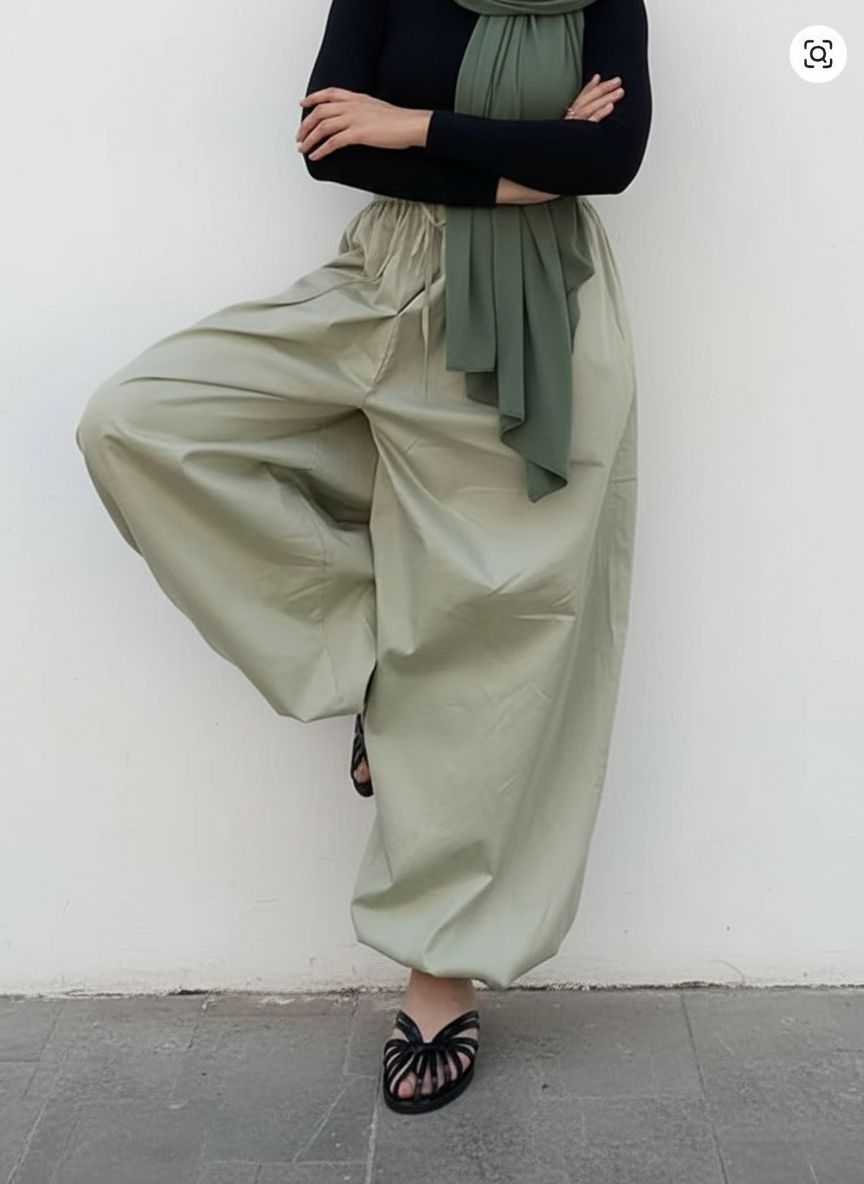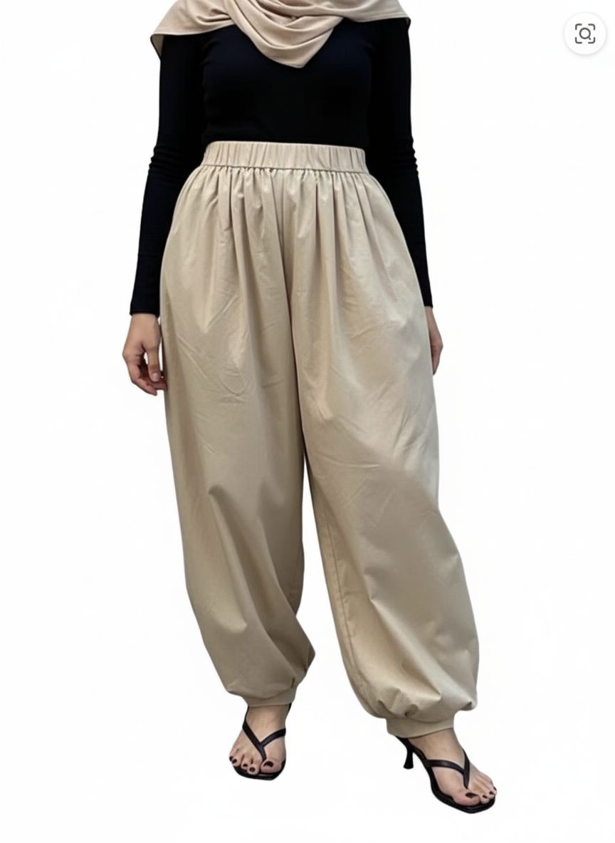 These pants are very light, windbreaker material, very large fit and cute. Stops right at the ankle. Color is just like photo.